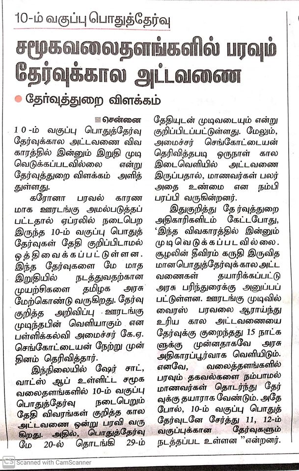10ம் வகுப்பு தேர்வு அட்டவணை தயார் - அமைச்சர் செங்கோட்டையன்